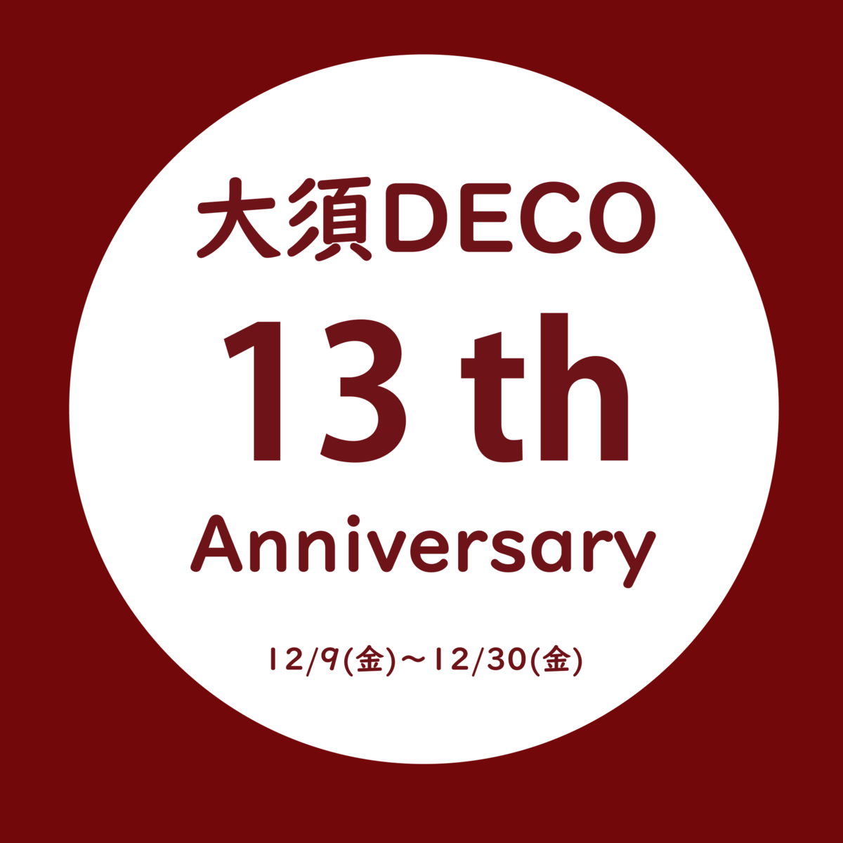 12/9(金)~12/30(金)まで、大須DECO13周年祭開催中です!グローバルゲートへ移転して、今年丸5年。大須にある大須DECOもささしまにある大須DECOもご来店いただき、ありがとうございます。そして、シオアパが移転してまるっと3年の年でもあります。